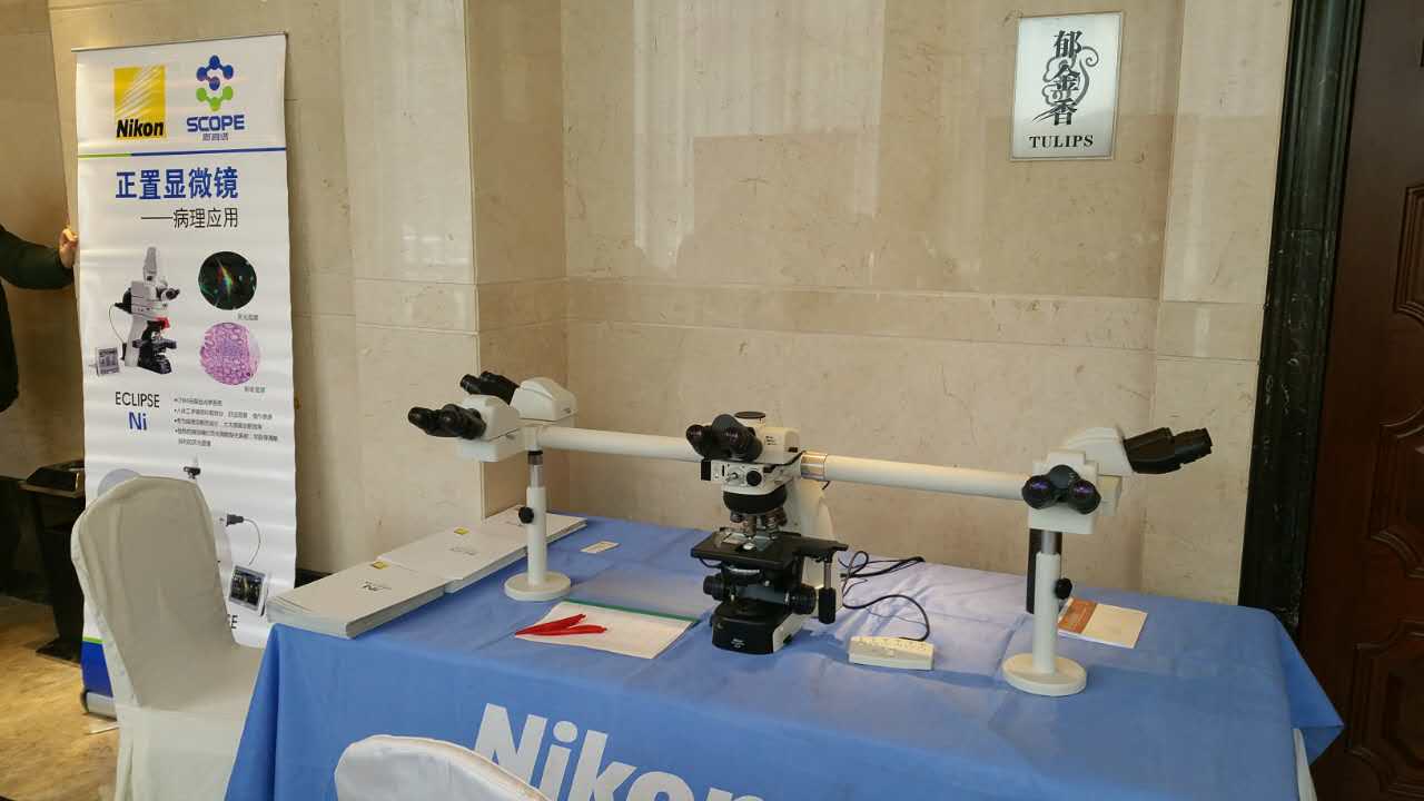 2015年江蘇省細胞病理學(xué)術(shù)會(huì )議于2015年12月25-27日在揚州花園國際大酒店召開(kāi)。我公司派出四位代表參加該次會(huì )議,并展出了Nikon——Ci-E五人共覽病理顯微鏡。會(huì )議期間,與會(huì )人員紛紛來(lái)到我公司展位,在工作人員的詳細介紹與引導下使用Ci五人共覽顯微鏡,觀(guān)察病理切片,并給予一致好評。